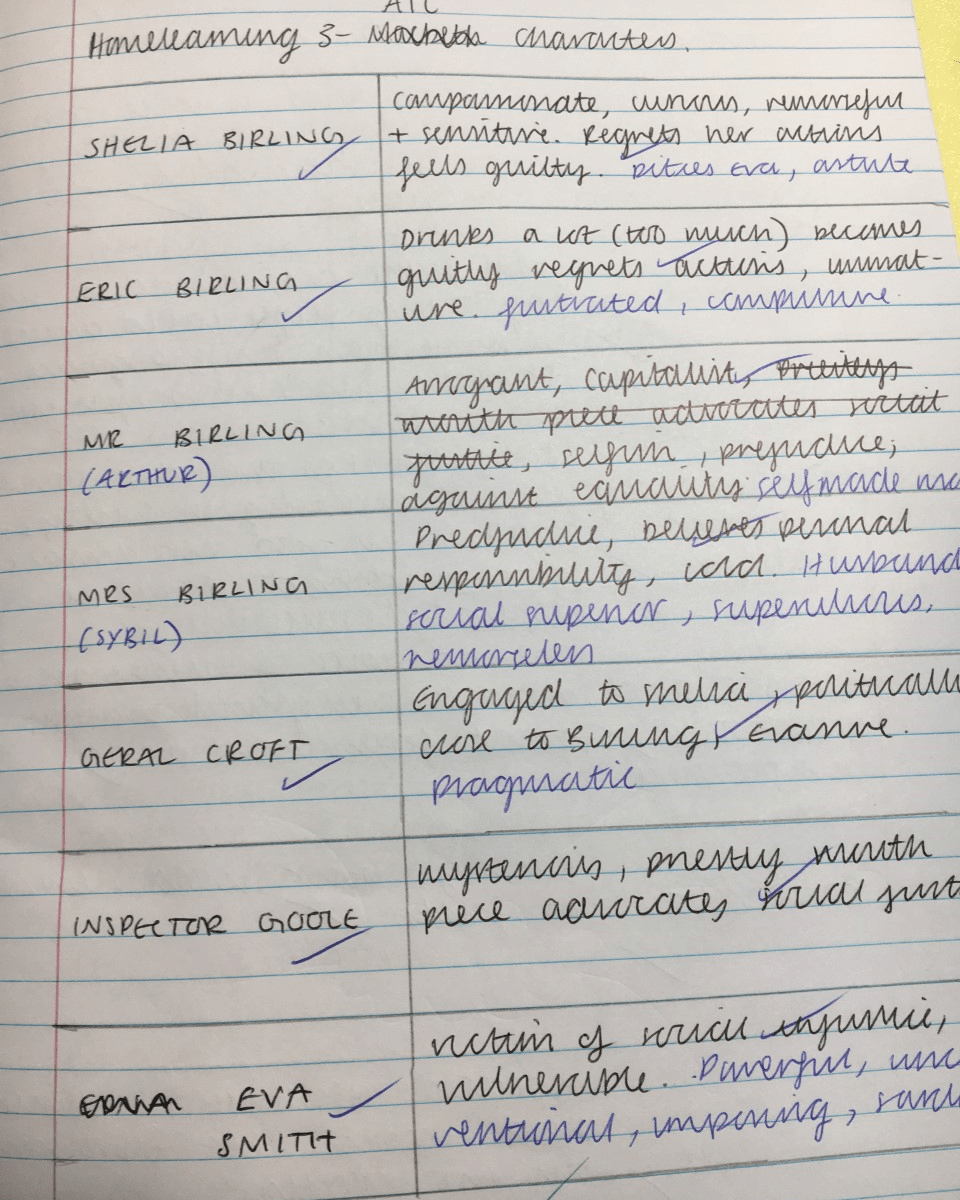 Here’s a couple of my year 11s filling in a blank A3 ‘An Inspector Calls’ Knowledge Organiser with all they could remember and then making corrections/filling in gaps in a different coloured pen: