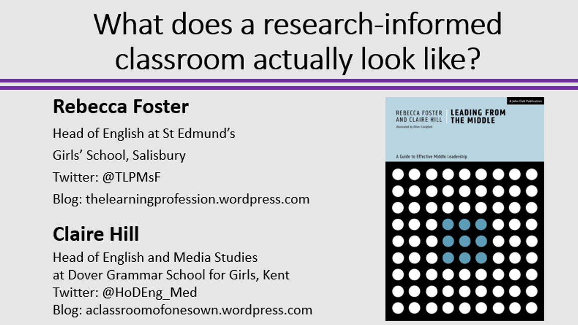 Today I had the pleasure of presenting with Claire Hill on what a research-informed classroom actually looks like. Both Claire and I share a vision of using research to guide effective classroom practice in our departments but also as a way to reduce unnecessary workload by focusing on the things that are more likely to really make a difference. Link to the PowerPoint slides here.